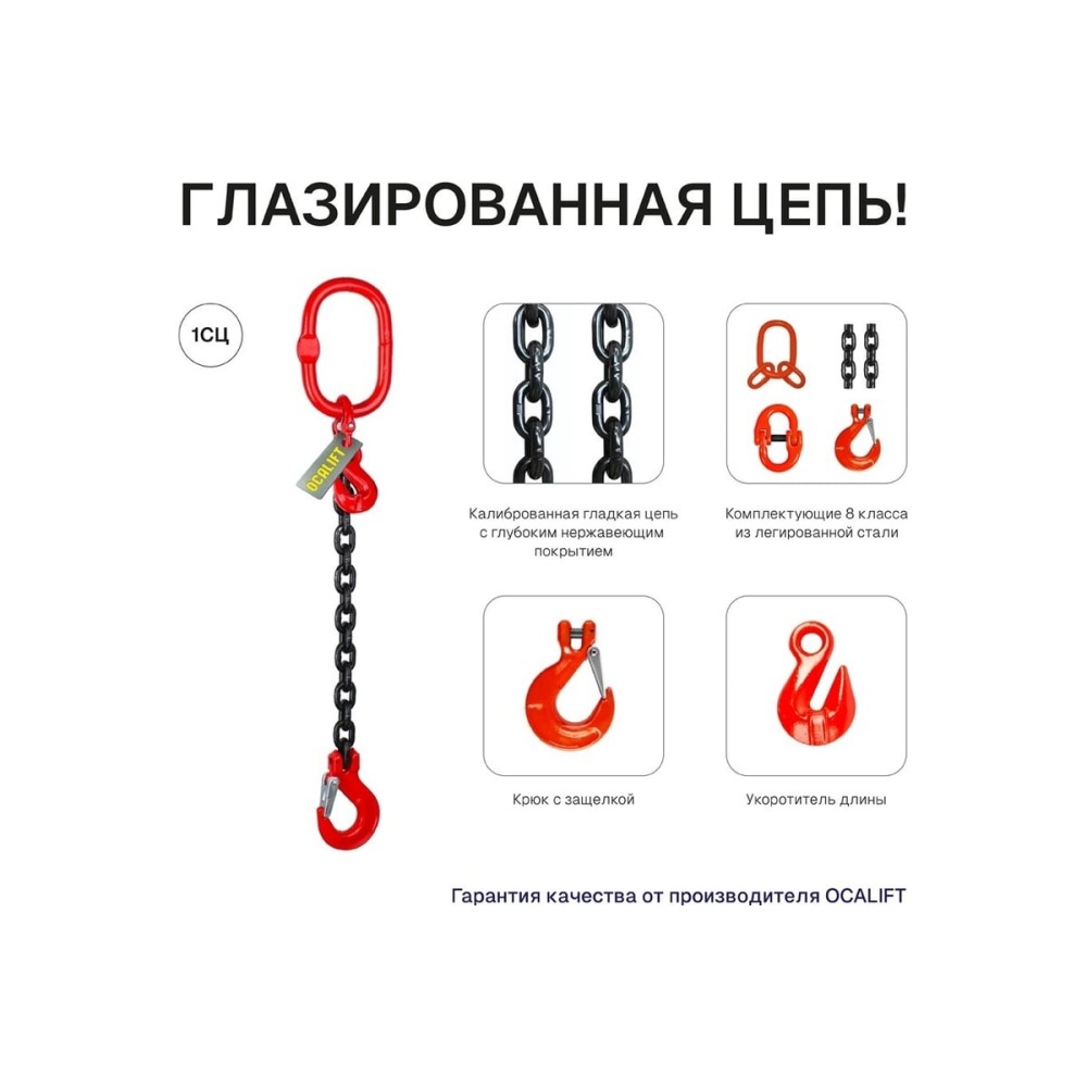 Цепной строп LITELIFT 1СЦ 1,5т 6м с укоротителем одноветвевой цепь 7x21 T8 G80 1sc1500t6h