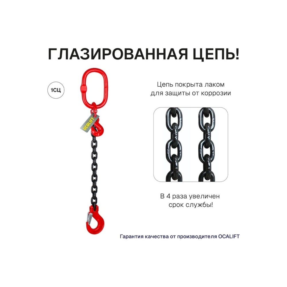 Цепной строп LITELIFT 1СЦ 1,5т 6м с самозакрывающимся крюком и укоротителем одноветвевой цепь 7x21 T8 G80 1sc1500t6sh