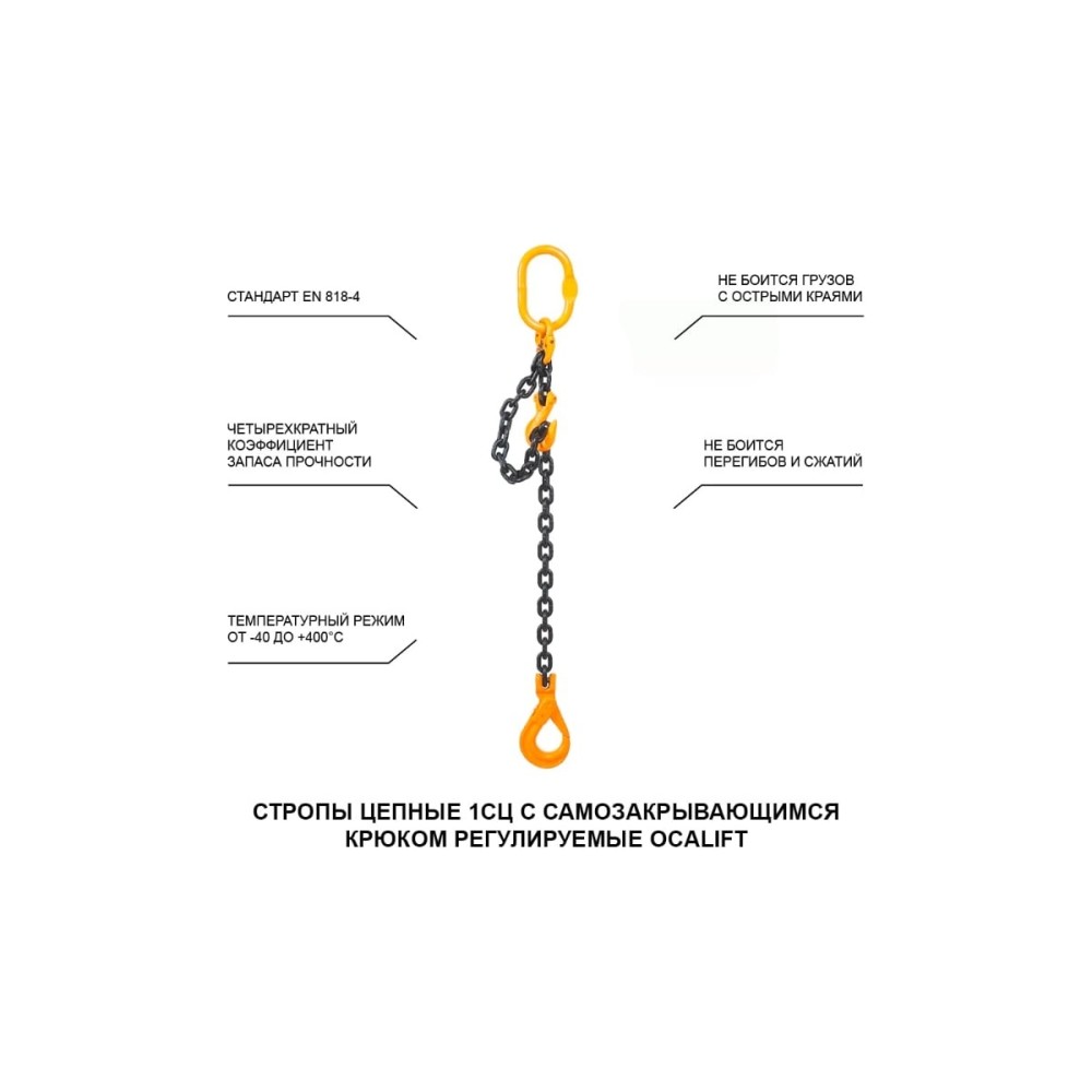 Цепной строп LITELIFT 1СЦ 3,15т 2м с самозакрывающимся крюком и укоротителем одноветвевой цепь 10x30 T8 G80 1sc3150t2sh