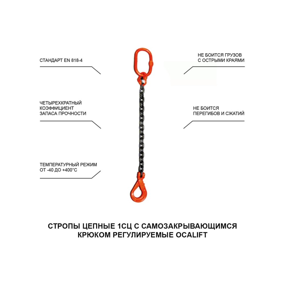 Цепной строп LITELIFT 1СЦ 8т 3м с самозакрывающимся крюком одноветвевой цепь 16x48 T8 G80 1sc8000t3s