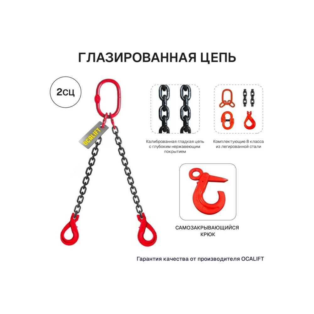 Цепной строп LITELIFT 2СЦ 11,2т 1,5м с самозакрывающимися крюками двухветвевой цепь 16x48 T8 G80 2sc11200t15s