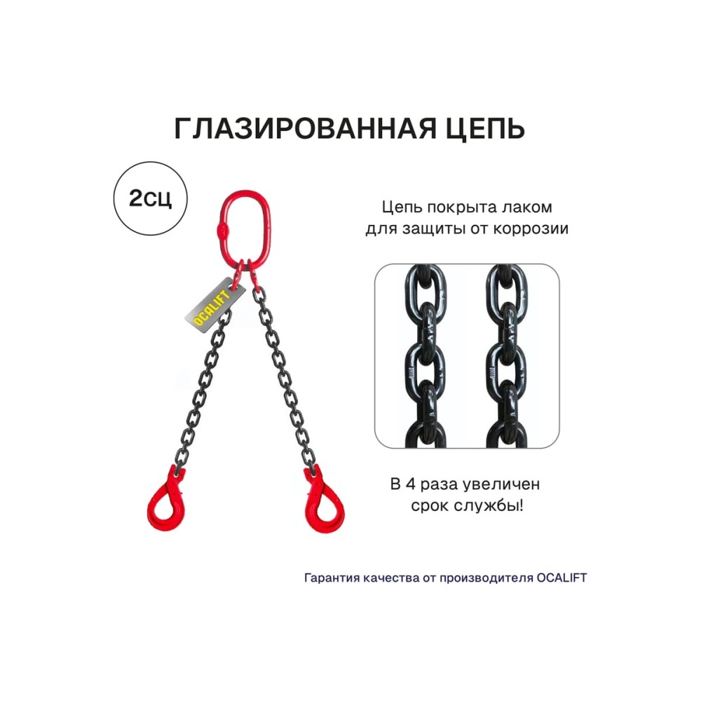 Цепной строп LITELIFT 2СЦ 2,12т 1м с самозакрывающимися крюками двухветвевой цепь 7x21 T8 G80 2sc2120t1s