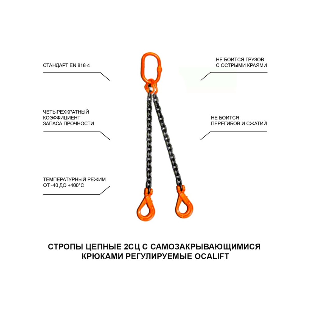 Цепной строп LITELIFT 2СЦ 4,25т 4м с самозакрывающимися крюками двухветвевой цепь 10x30 T8 G80 2sc4250t4s