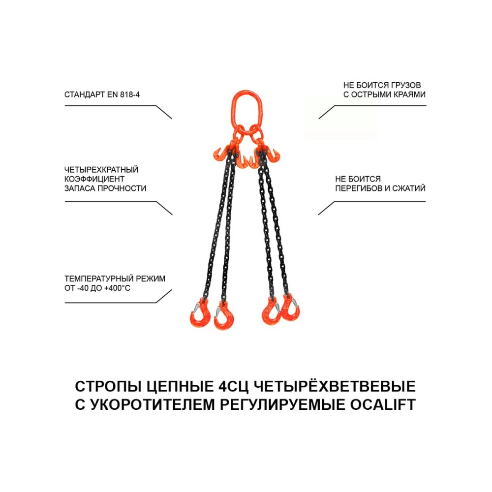 Цепной строп LITELIFT 4СЦ 17т 3м с укоротителями четырехветвевой цепь 16x48 T8 G80 4sc17000t3h