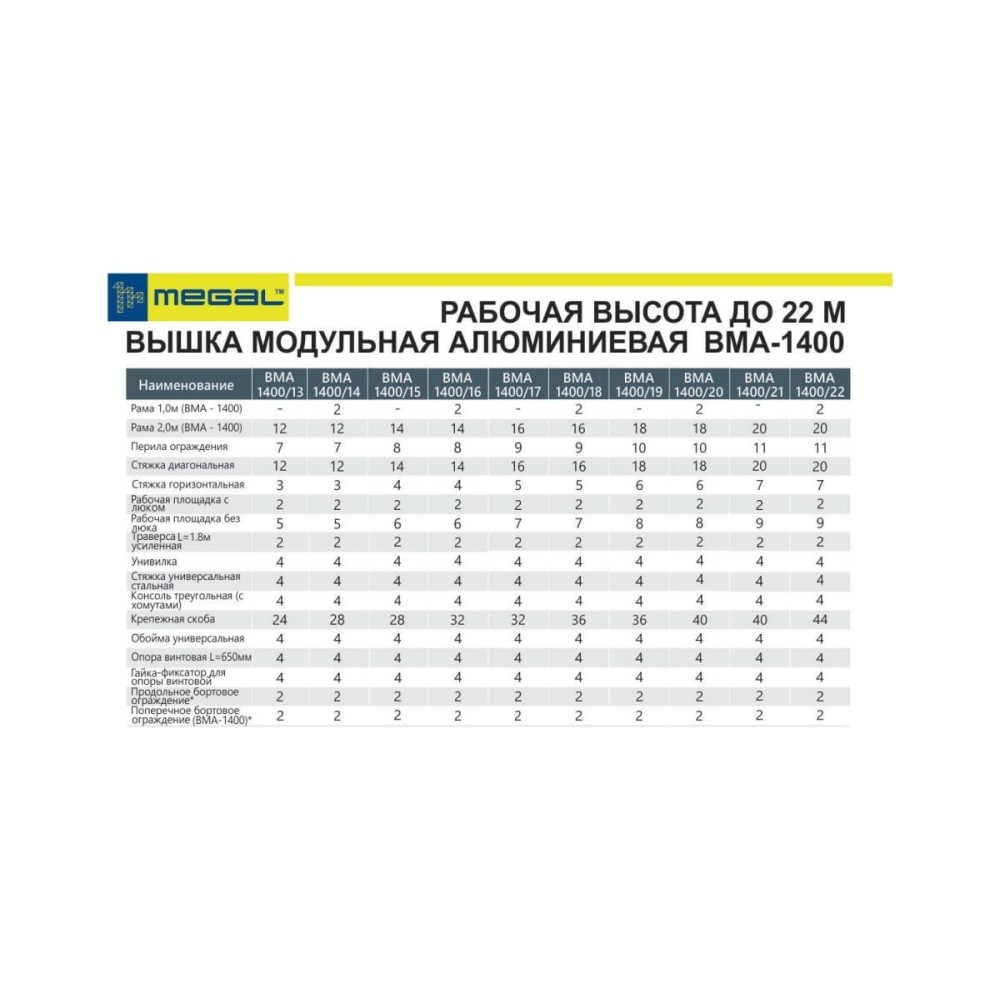 Модульная алюминиевая вышка MEGAL ВМА 1400/19 101419