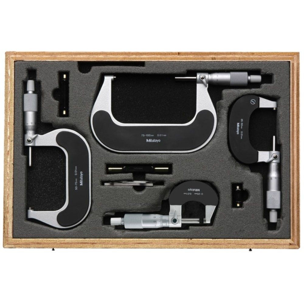Набор микрометров 100 0,01 (0-100) (4шт.), меры установочные (3шт.) 102-911-40 Mitutoyo