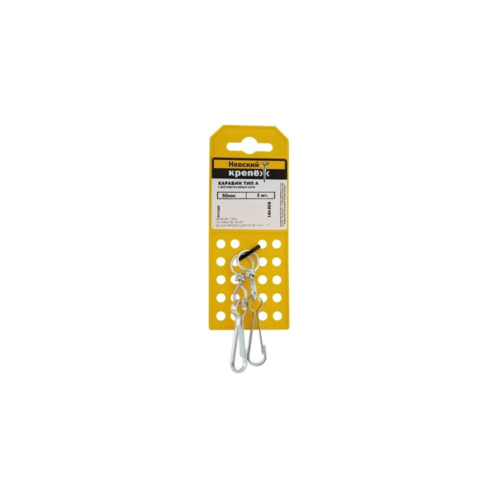 Карабин Невский Крепеж тип А, с вертлюгом, 50 мм, белый цинк, 2 шт. 826101