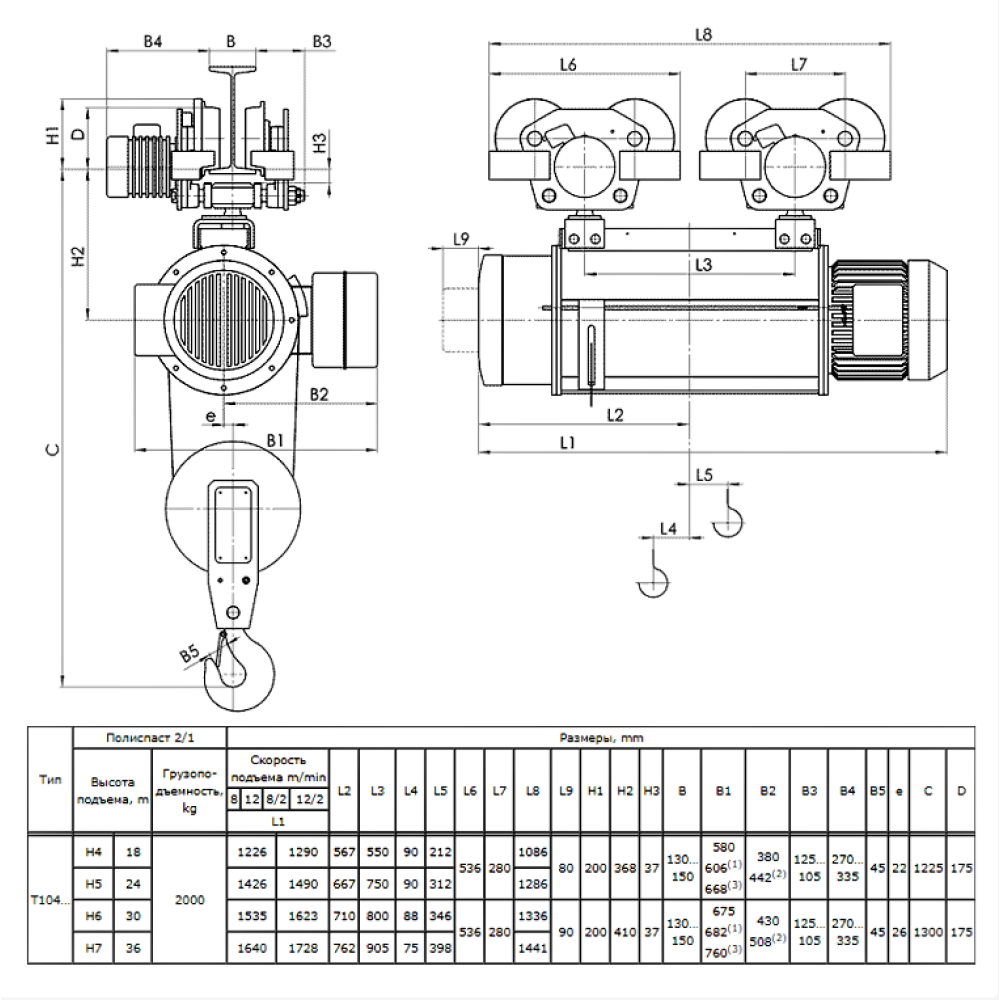 Таль электрическая передвижная 13 T10 472 г.п. 2 т; в.п. 36 м; полиспаст 2/1; ск. пер. 20 м/мин; ск. под. 8 м/ мин; Темп. реж. -20 + 40; У3;Напряжение 380 В; Класс защ. IP 54; Подвесной пульт управления.