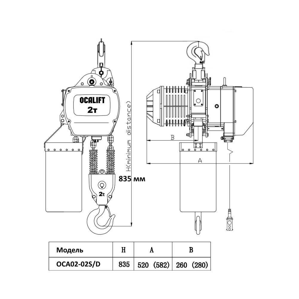 ТАЛЬ ЦЕПНАЯ СТАЦИОНАРНАЯ OCALIFT 02-02S 2Т 6М