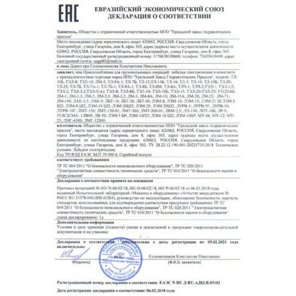 Лебедка тяговая ЛМ не предназначена для подъема людей. Климатическое исполнение «У», категория 2 по ГОСТ 15150-69.