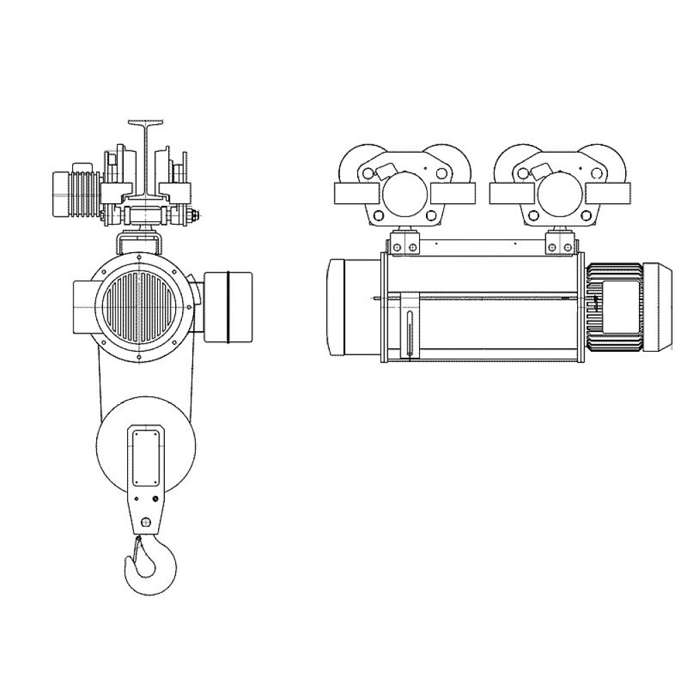 Таль электрическая передвижная двумя тележками 13 T10 736 г.п. 8 т; в.п. 12 м; полиспаст 2/1; ск. пер. 20 м/мин; ск. под. 8 м/ мин; Темп. реж. -20 + 40; У3; Напряжение 380 В; Класс защ. IP 54; Подвесной пульт управления.