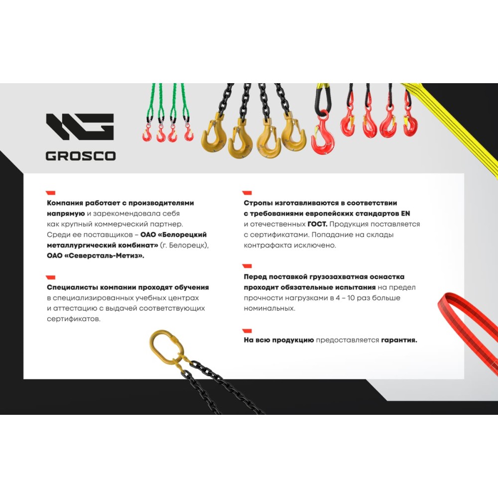 Строп цепной четырехветвевой Grosco 4СЦ 45 т, 10000 мм, 10 м CH4X45010