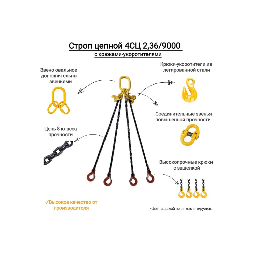 Цепной четырехветвевой строп КанТраст 4СЦ 2,36/9000 с крюками укоротителями 4STS2369000R