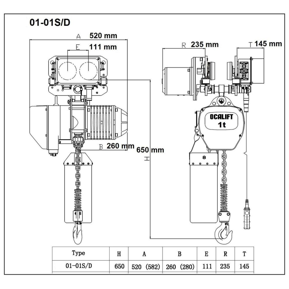 ТАЛЬ ЦЕПНАЯ ПЕРЕДВИЖНАЯ OCALIFT 01-01s 1Т 6М