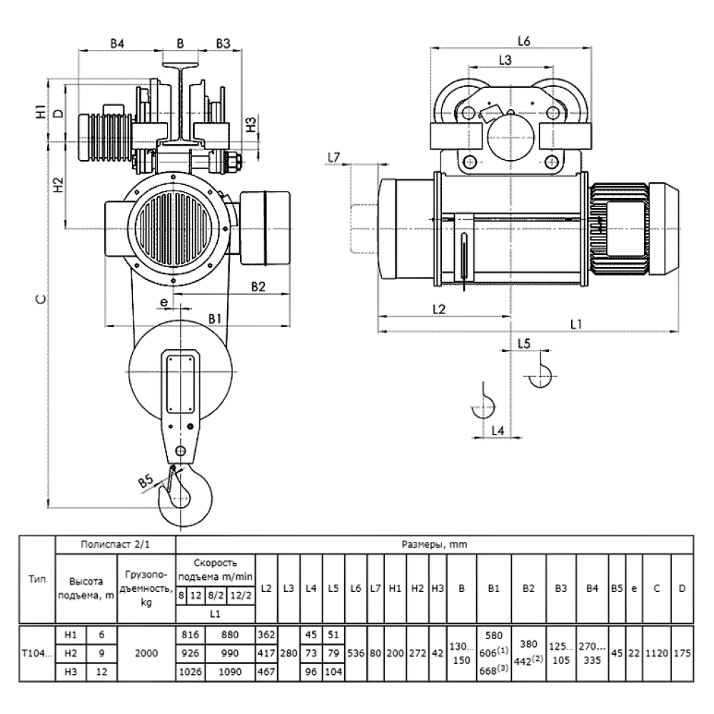 Таль электрическая передвижная 13 T10 422 г.п. 2 т; в.п. 9 м; полиспаст 2/1; ск. пер. 20 м/мин; ск. под. 8 м/ мин; Темп. реж. -20 + 40; У3;Напряжение 380 В; Класс защ. IP 54; Подвесной пульт управления.