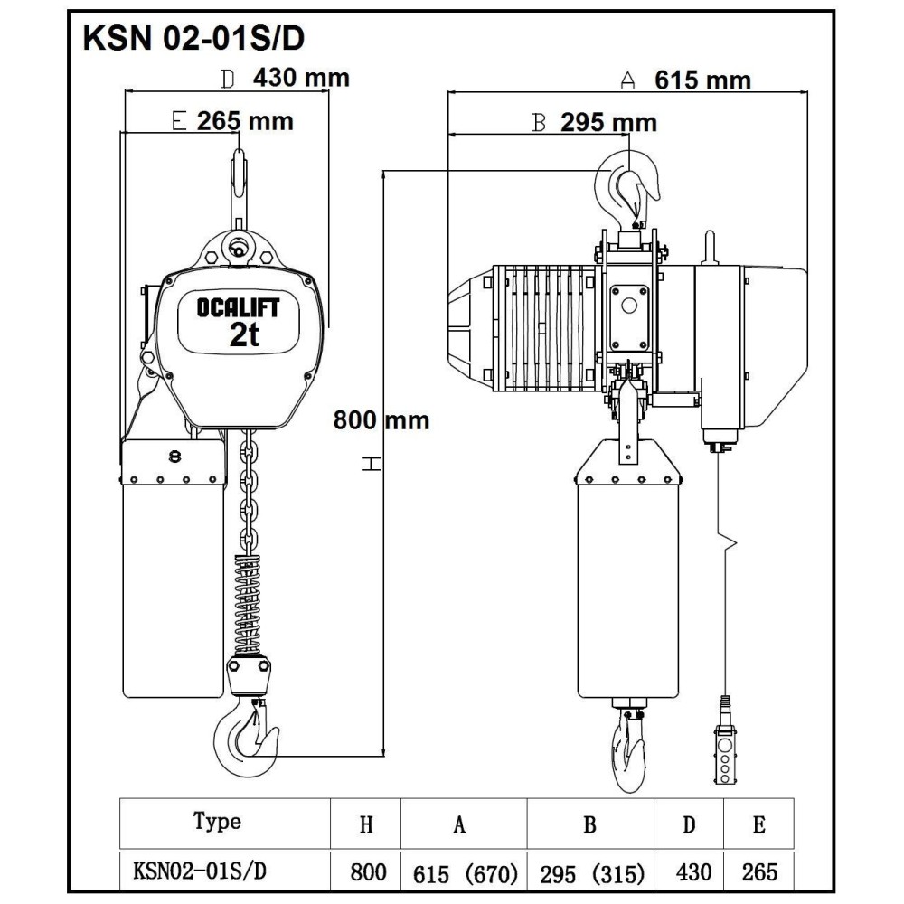 ТАЛЬ ЦЕПНАЯ СТАЦИОНАРНАЯ OCALIFT 02-01S 2Т 18М