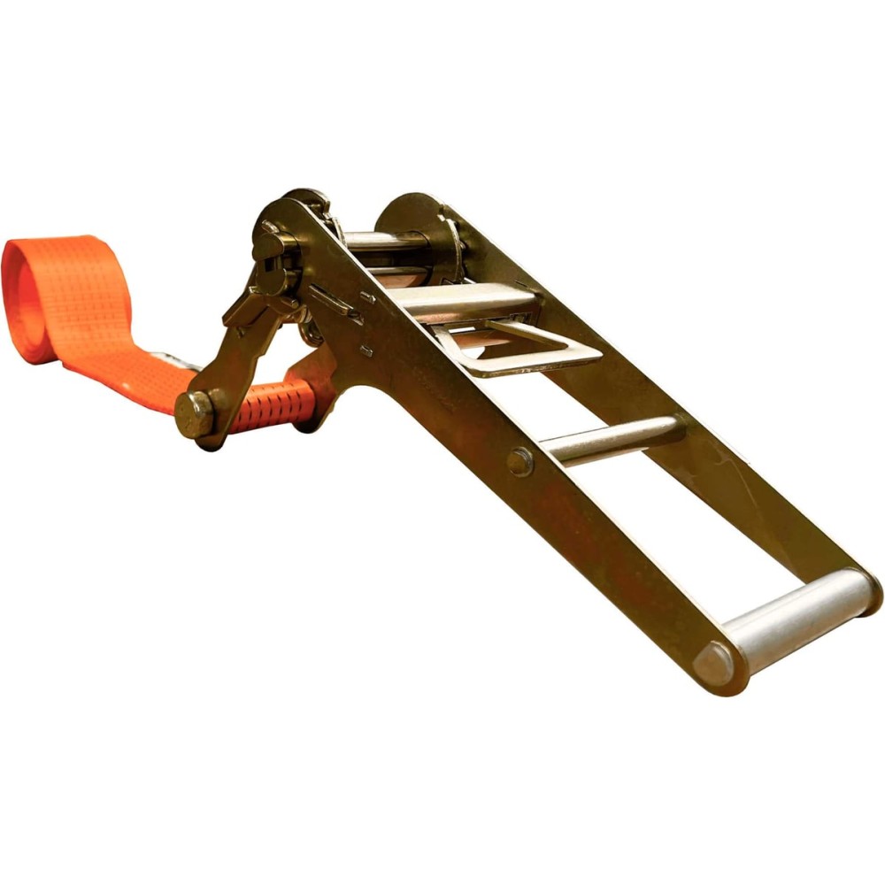 Стяжной ремень прост в использовании. Бесконечная конструкция, свободный конец подается обратно через храповик, а затем затягивается, чтобы создать бесконечную петлю.
