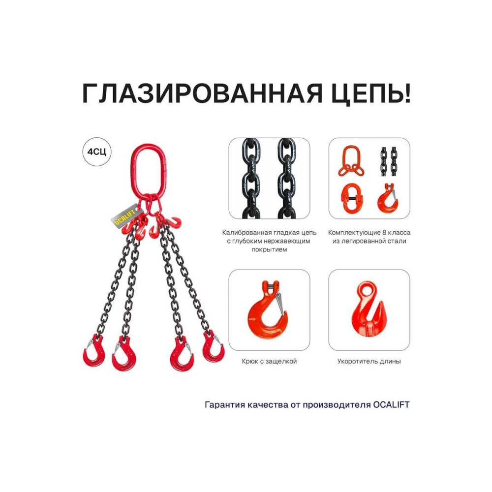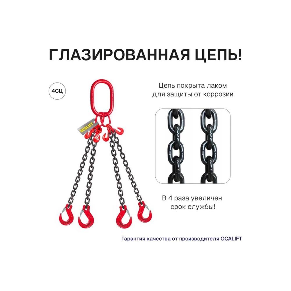 Цепной четырехветвевой строп OCALIFT 4СЦ 2,36 т, 4 м, т8, с укоротителями цепь глазированная 8кл G80 4sc2360t4h