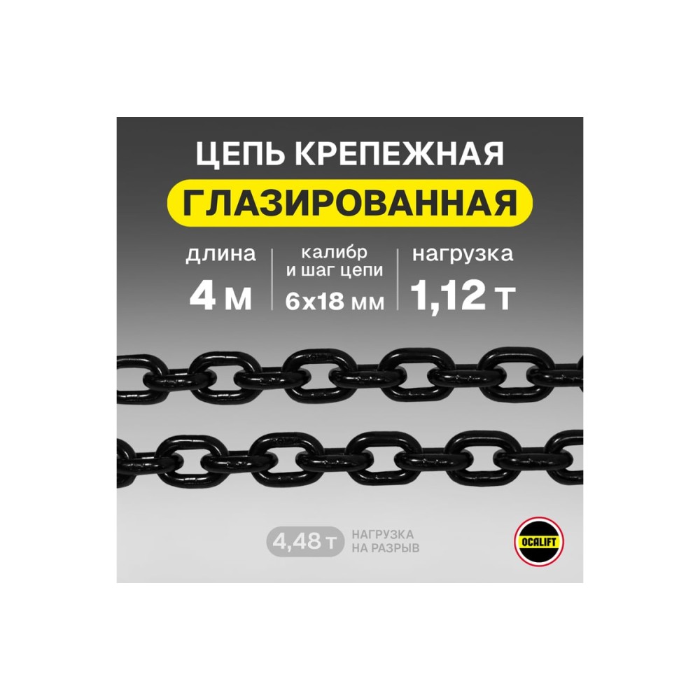 Цепь грузовая OCALIFT 6x18 мм, 4 м отрезок, глазированная, G80 8186184mf