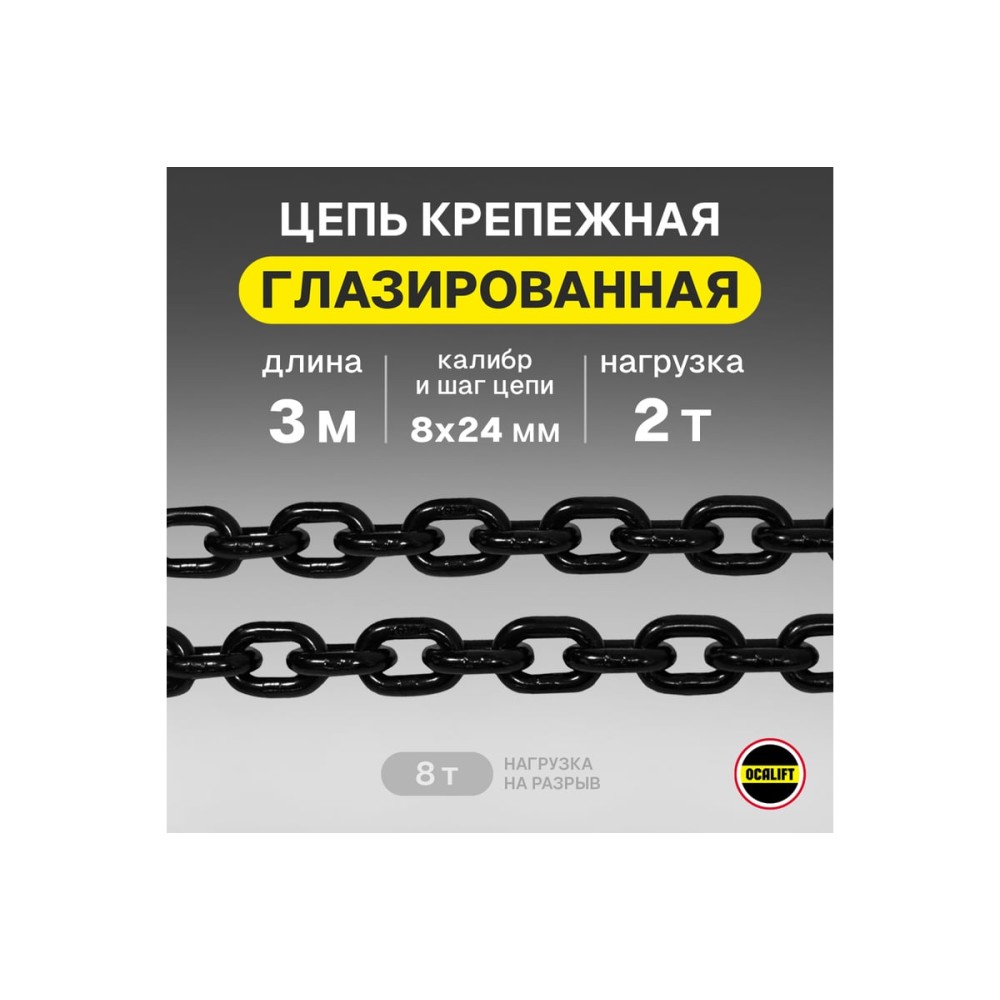 Цепь грузовая OCALIFT 8x24 мм, 3 м отрезок, глазированная, G80 8188243mf