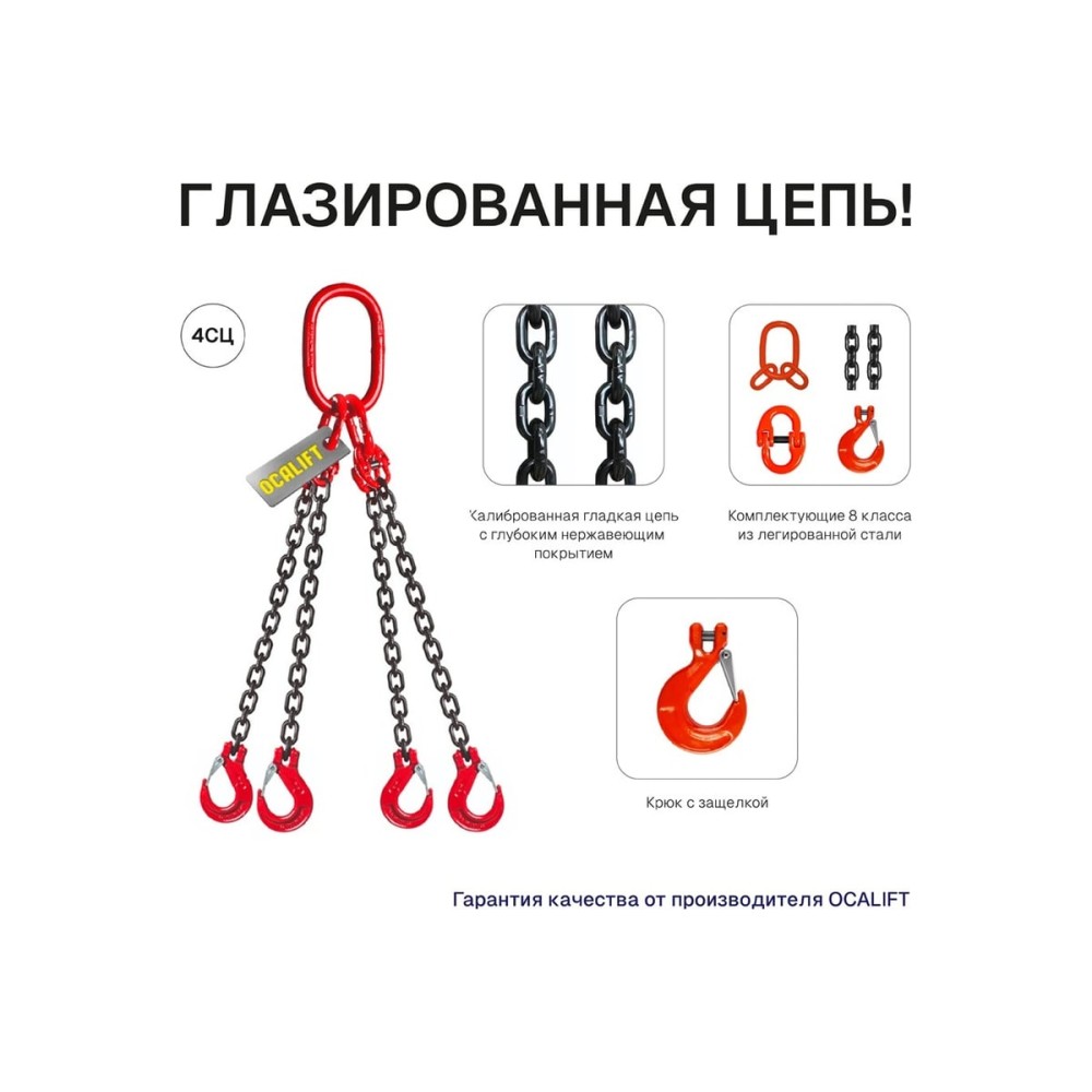Строп цепной OCALIFT 4СЦ 17 т, 2,5 м, цепь глазированная, Т8, G80 4sc17000t25f