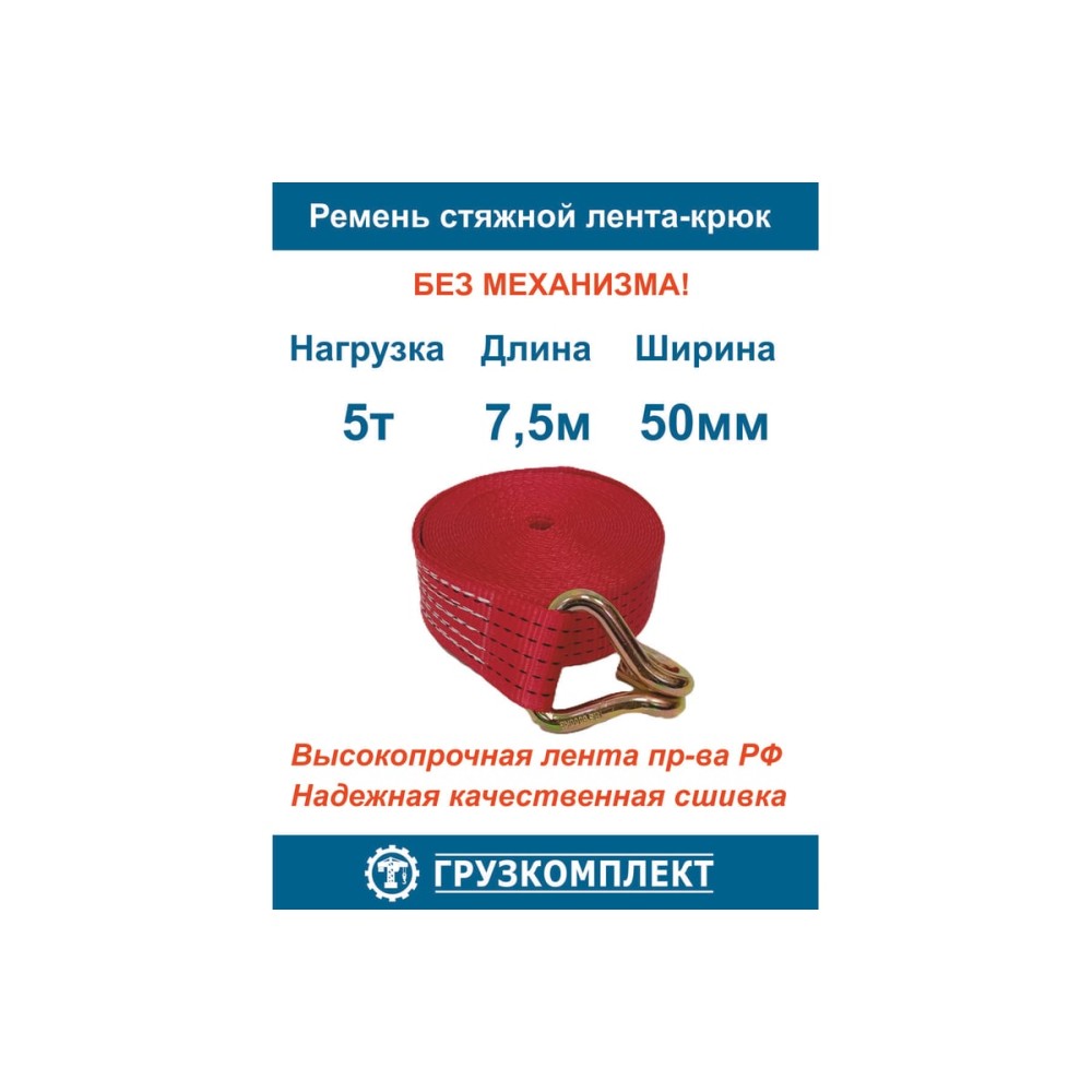 Стяжной ремень ООО Грузкомплект 5 т, 7.5 м, лента-крюк, без механизма СРЛК575
