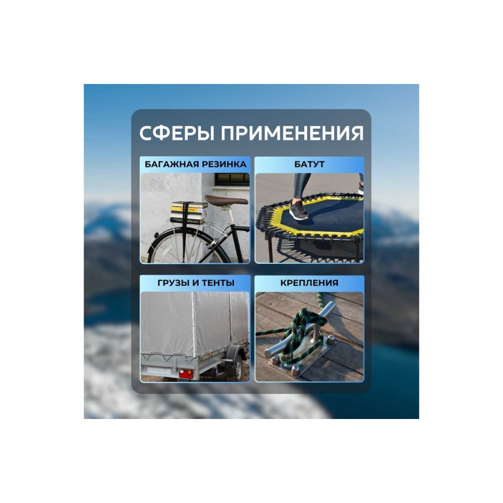 Эластичный шнур 8 мм 100 м – это универсальный крепежный и амортизационный материал, широко применяемый в спорте, туризме, быту, транспорте и промышленности. Внутренняя основа эспандерной резинки из латекса обеспечивает высокую растяжимость и амортизационные свойства, а внешняя защитная оплетка из полипропилена делает шнур устойчивым к износу, влаге и ультрафиолету.