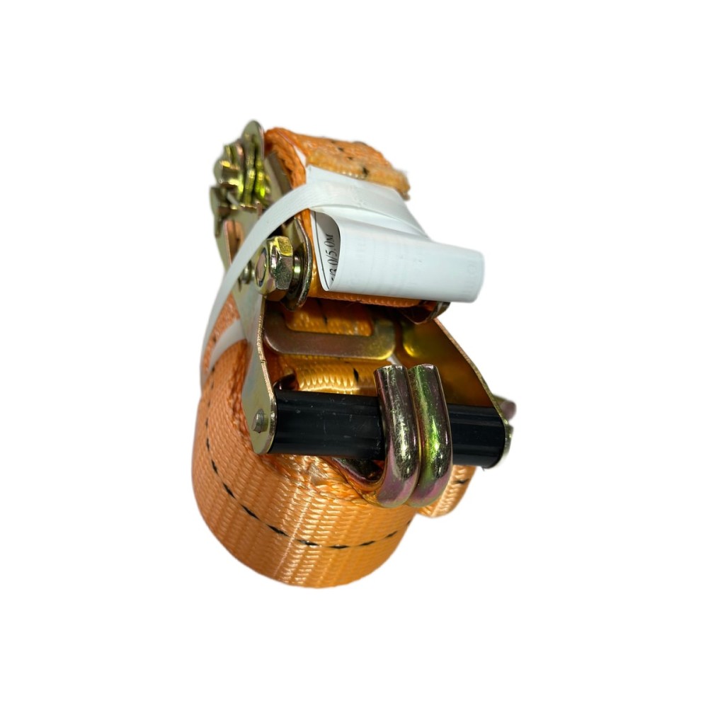 Ремни изготовлены из высокопрочной ленты, материал – 100% полиэстер. Лента стяжного ремня устойчива к воздействию жестких погодных условий, механизм затяжки и двойные крюки обладают высокой прочностью.Ремни имеют информационную бирку с указанием схемы закрепления груза и показателей нагрузки, сопровождаются паспортом крепежного устройства.
