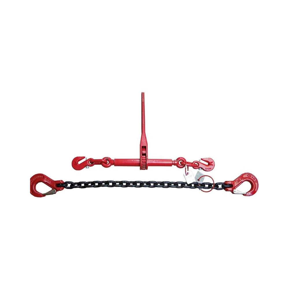 Комплект представляет высокопрочную цепь с крюками на концах и вантовое натяжное устройство: талреп с рычагом, для быстрой фиксации и крепления крупногабаритных и тяжелых грузов при перевозке на транспортных платформах, автовозах, контейнерах.