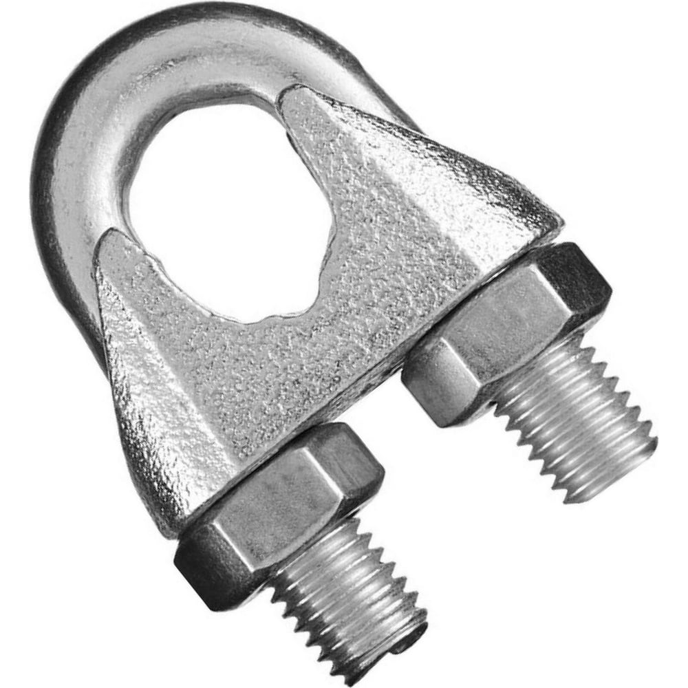 Зажим канатный изготавливается ковано-штамповочным методом. Представляет собой скобу с резьбой и гайками по концам и основу – перемычку с двумя отверстиями и выемкой для точной подгонки и закрепления тросов и канатов. Закрепление троса происходит путем затягивания гаек на концах скоб. Зажимы применяются для соединения тросов между собой и для изготовления петель на концах троса. Этот тип изделия является бытовым и предназначен для небольших нагрузок.