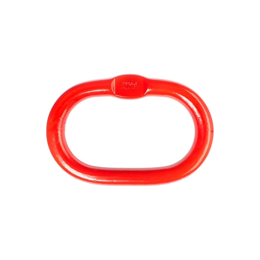 Звено овальное с плоским профилем используется при изготовлении строп для грузоподъемных работ. Производится из высококачественной стали 8 класса. Коэффициент запаса прочности 4:1.