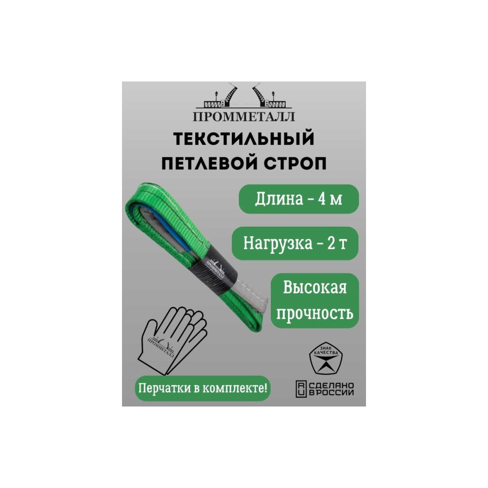 Текстильный петлевой строп ПРОММЕТАЛЛ СТП 2 т 4 м выполнен из прочного материала. Используется при такелажных работах.