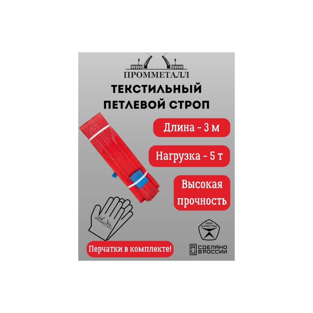 Текстильный петлевой строп ПРОММЕТАЛЛ СТП 5 т 3 м предназначен для такелажных работ. Выдерживает нагрузку до 5 тонн.
