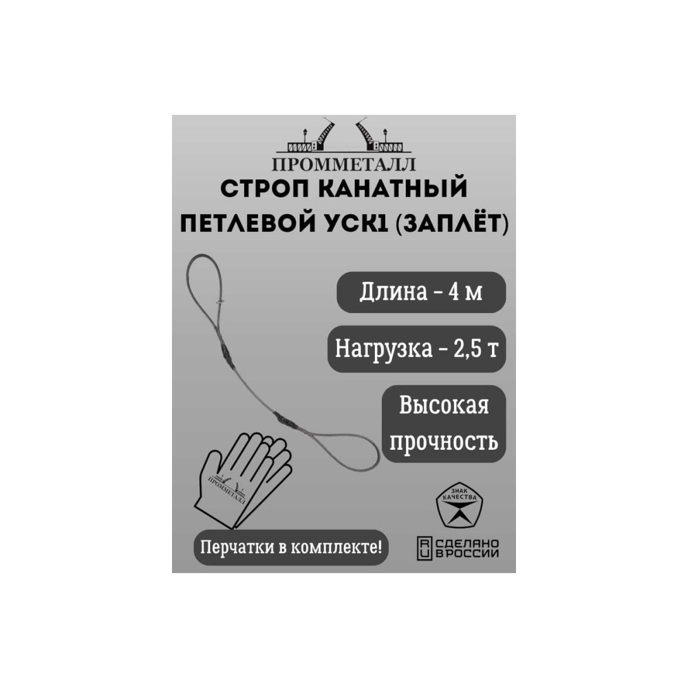 Канатный петлевой строп ПРОММЕТАЛЛ УСК1 заплет 2.5 т 4 м представляет собой надежное грузозахватное приспособление и используется для такелажных работ.