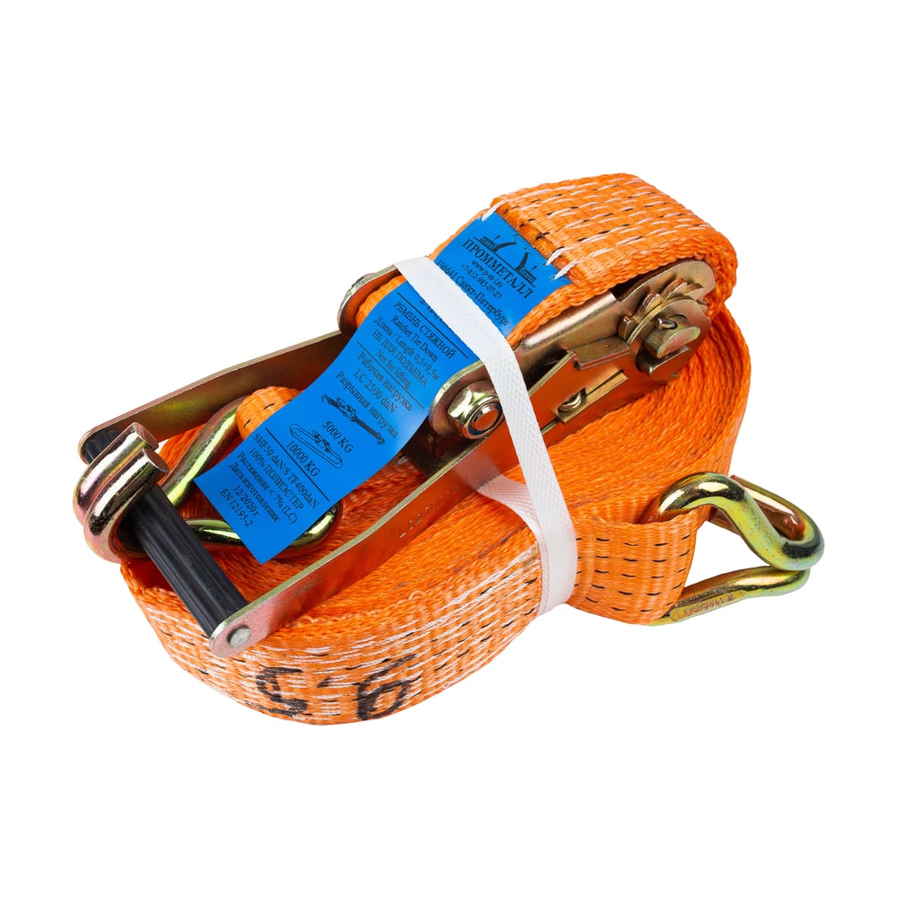 Тип ремень с крюками и фиксатором Стяжное усилие 5 т Длина 5 м Ширина 50 мм Цвет оранжевый Материал полиэстер ГОСТ/ТУ нет Вес нетто 4 кг Количество в упаковке 1 штГарантия производителя