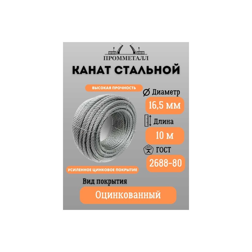 Технические характеристики каната ПРОММЕТАЛЛ 16.5 мм. 10 м.пог., оцинкованный