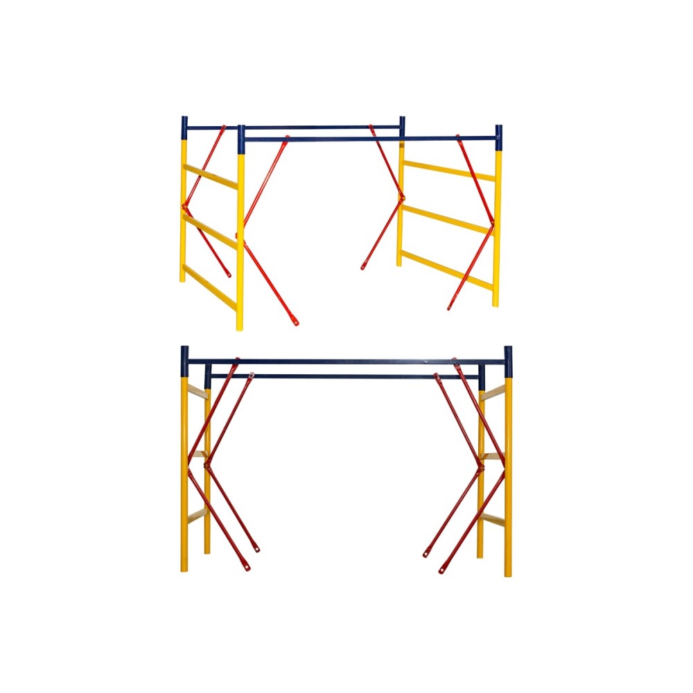 Секции вышки снабжены диагональными металлическими стяжками, обеспечивающими дополнительную устойчивость при резких порывах ветра.