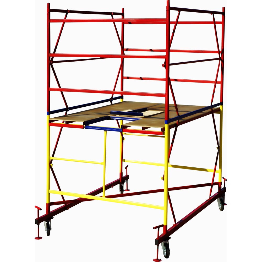 Вышка обладает шириной базового блока 1.6х2.0 метра, что позволяет комфортно работать сразу нескольким людям, размещая весь необходимый инструмент и материалы.