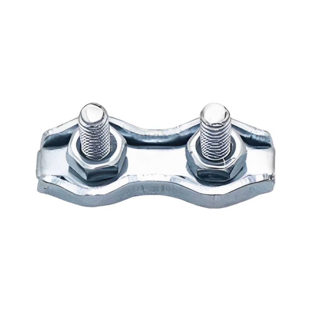 Соединитель двойной (duplex) используется для сращивания тросов и канатов малых диаметров между собой, а также для формирования петель на концах троса. Отличается от одинарного зажима большим запасом прочности и образует максимально надежное крепление. Свободный конец троса устанавливается в зажим, причем конец троса должен выступать из зажимного устройства на расстояние не меньше чем 1/2 диаметра троса. Образованное соединение закрепляется прижимной пластиной и болтовым соединением. Для защиты от истирания, конструкция соединителя предусматривает закладку петли троса в коуш.