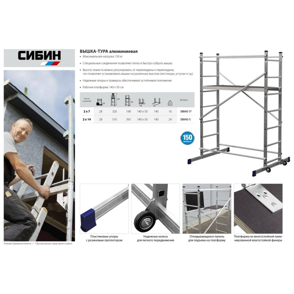 Алюминиевая вышка-тура СИБИН 5 метров 38840-5
