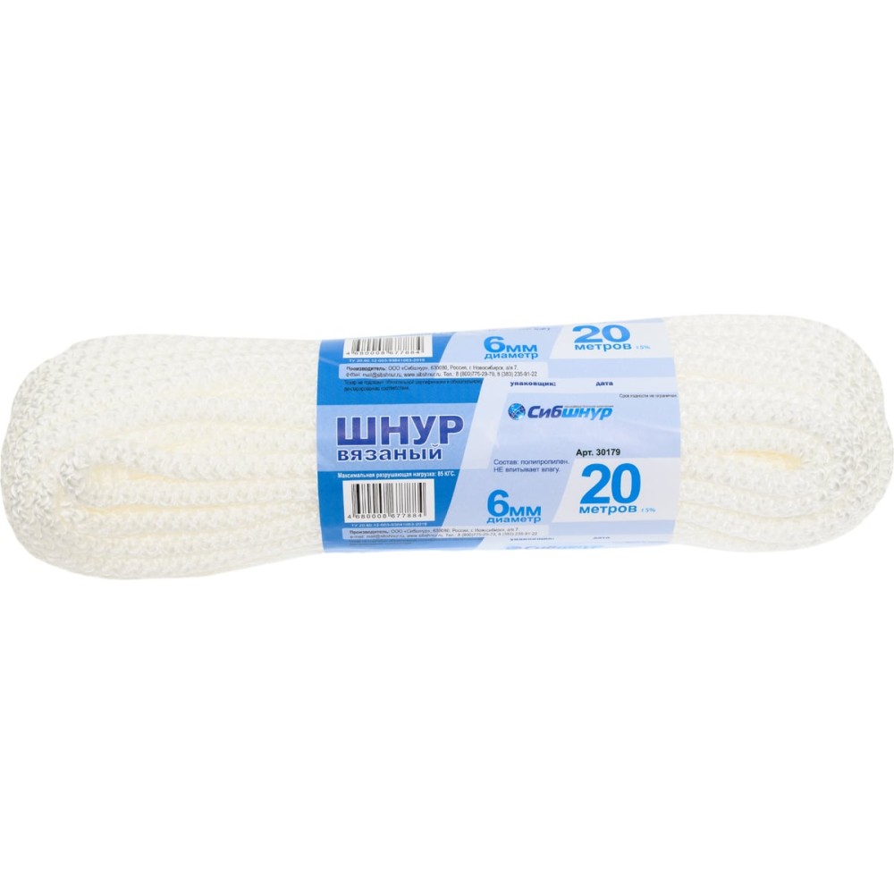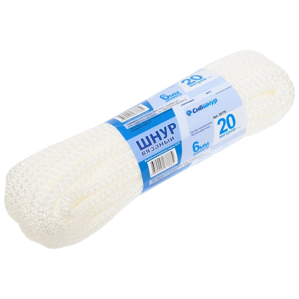 Вязаный шнур Сибшнур диаметр 6 мм, 20 м, белый 30179 предназначен для бытового и хозяйственного использования.