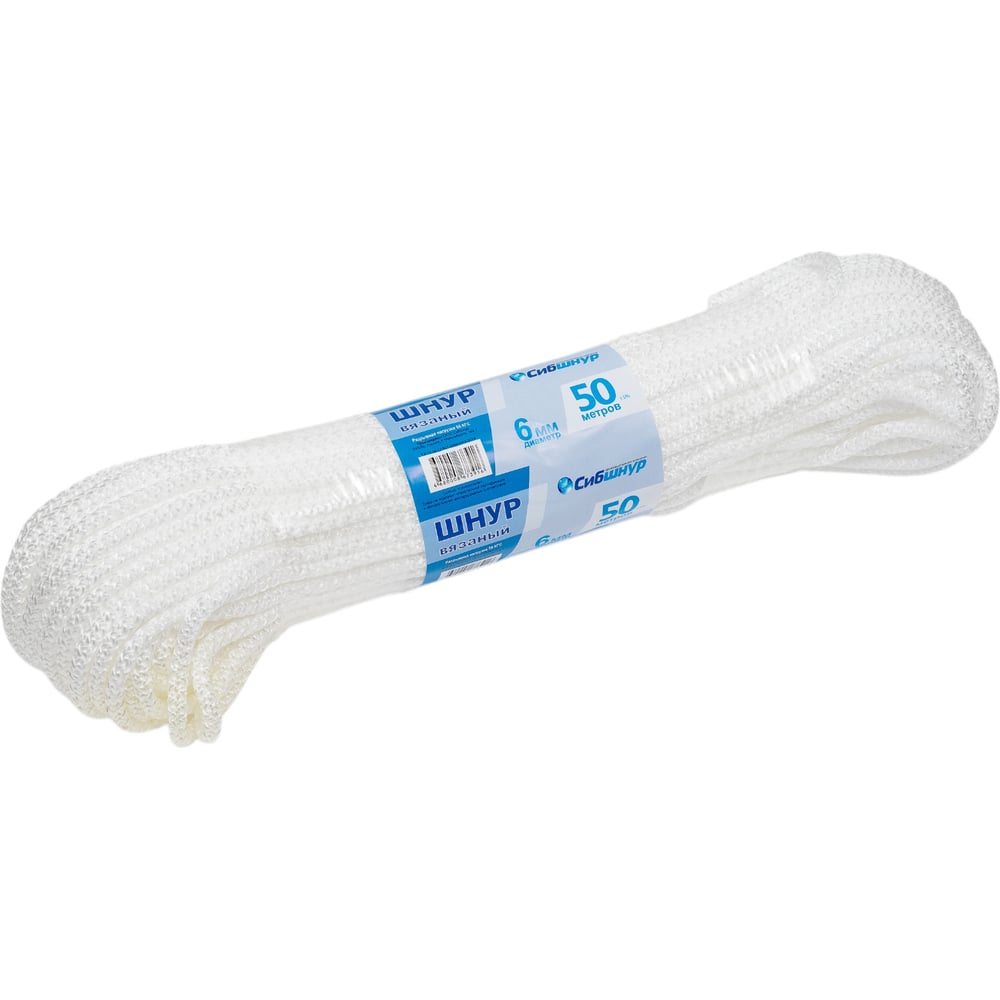 Шнур вязаный СИБШНУР д 6 мм, белый, 50 м 30186