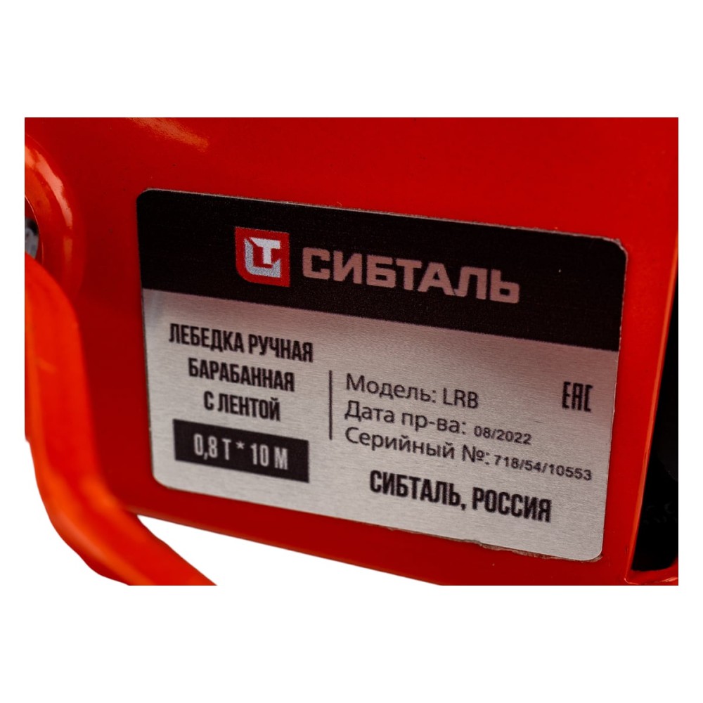 Ручная барабанная лебедка Сибталь модель LRB, 800 кг, лента 10 м 070 0018 0800