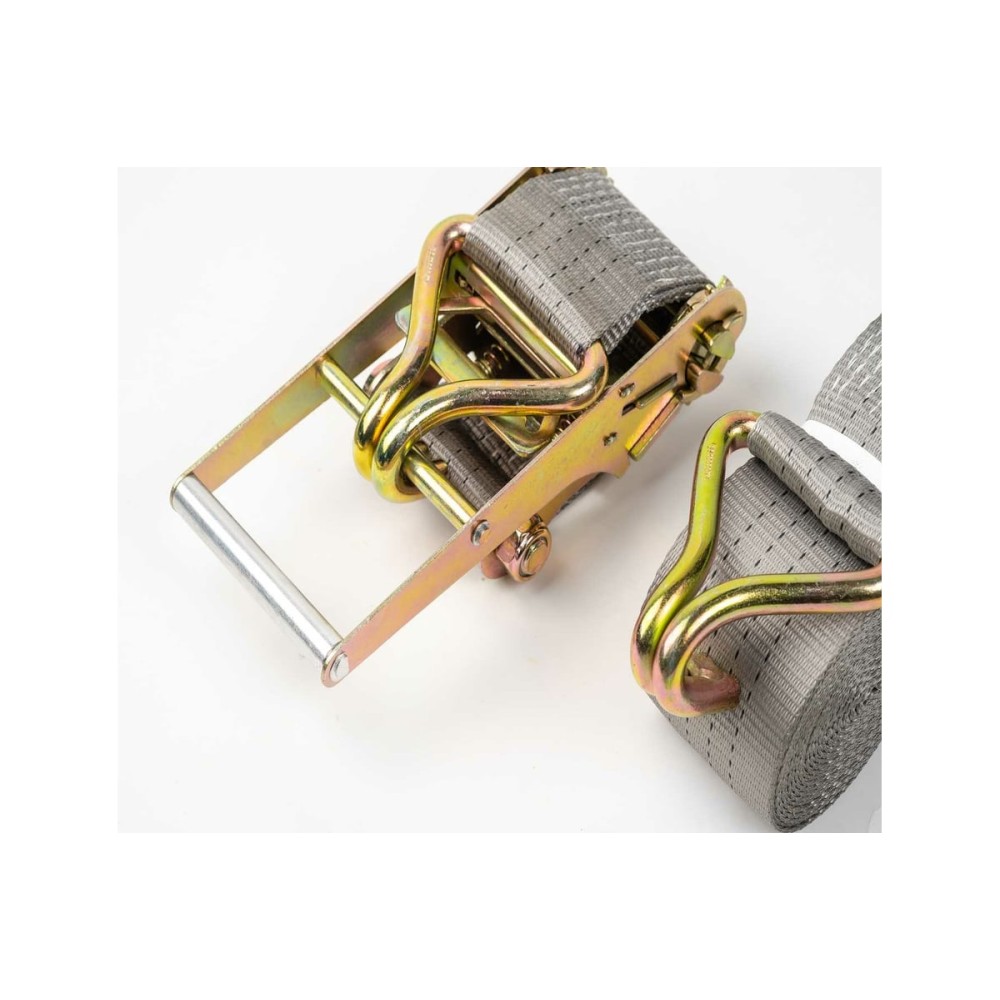 Крюки выполнены из прочной стали. Такие стяжные ремни в основном применяют для крепления крупногабаритных грузов, например автомобилей на эвакуаторе.
