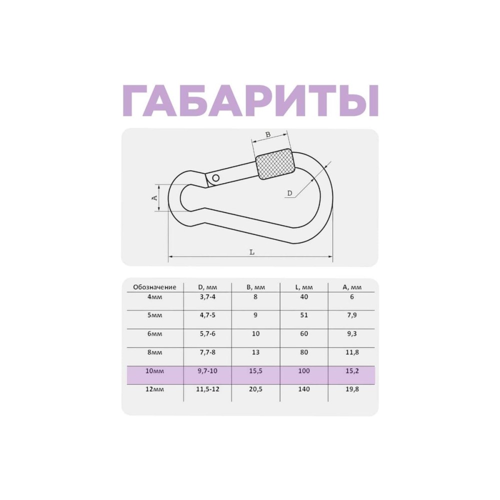 Карабин с фиксатором STEELREX DIN 5299D, цинк, 10 мм, упаковка 1 шт. 0526010000W100000110