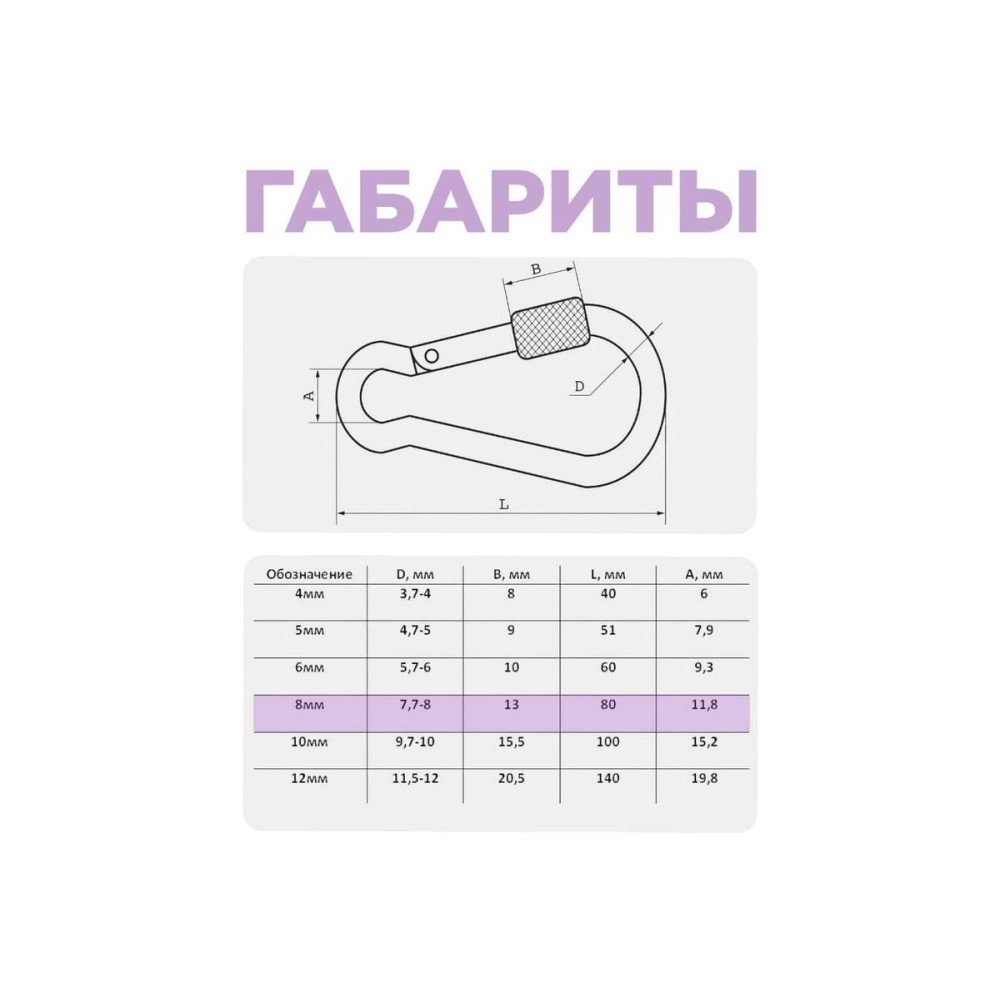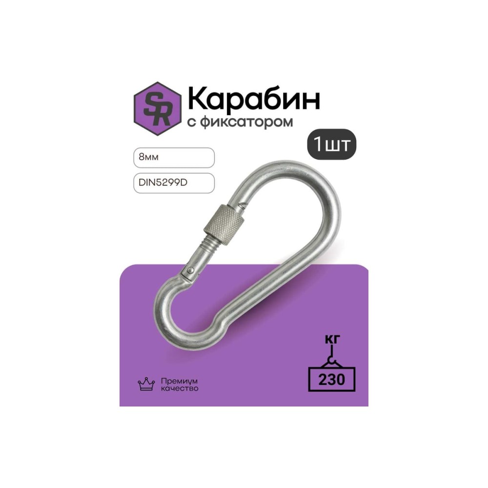 Карабин с фиксатором STEELREX DIN 5299D, цинк, 8 мм, упаковка 1 шт. 0526008000W100000110