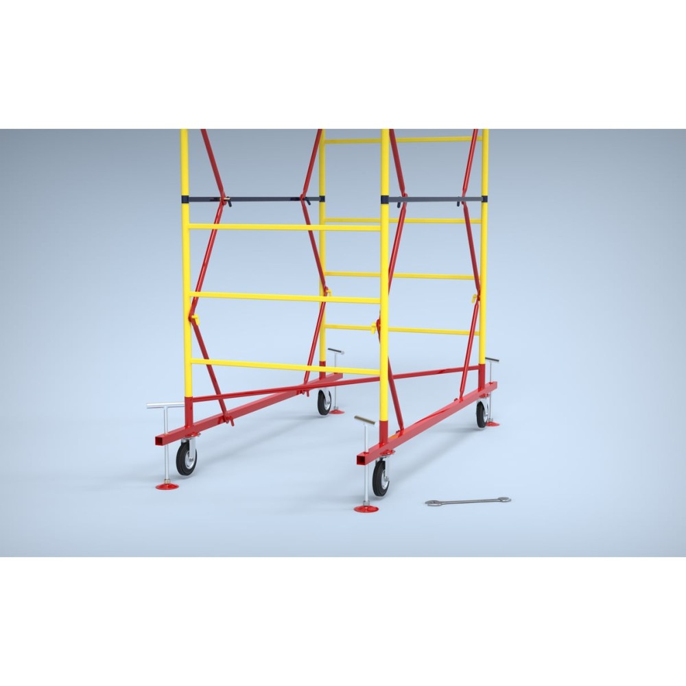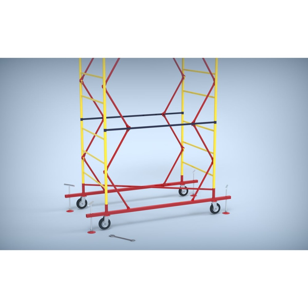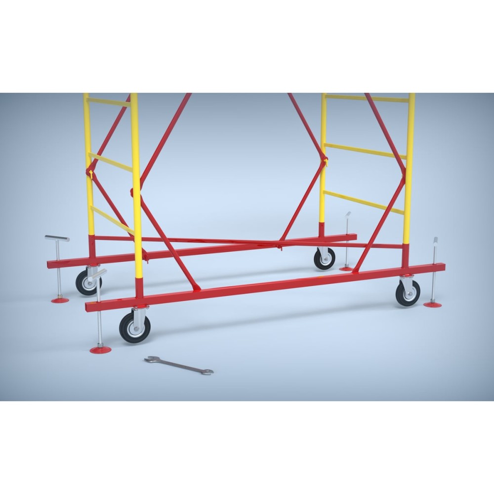 Транспортировочные колеса в комплекте предусмотрены для удобного перемещения вышки по строительной площадке.