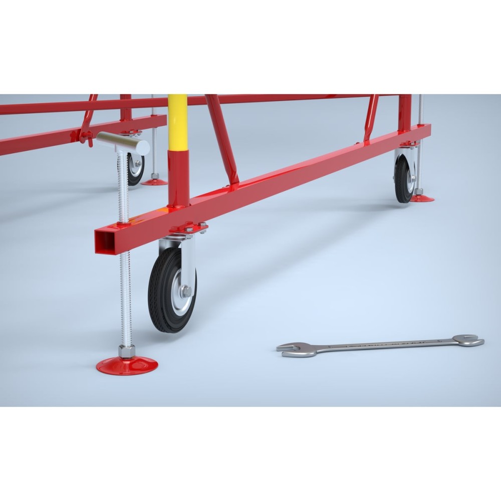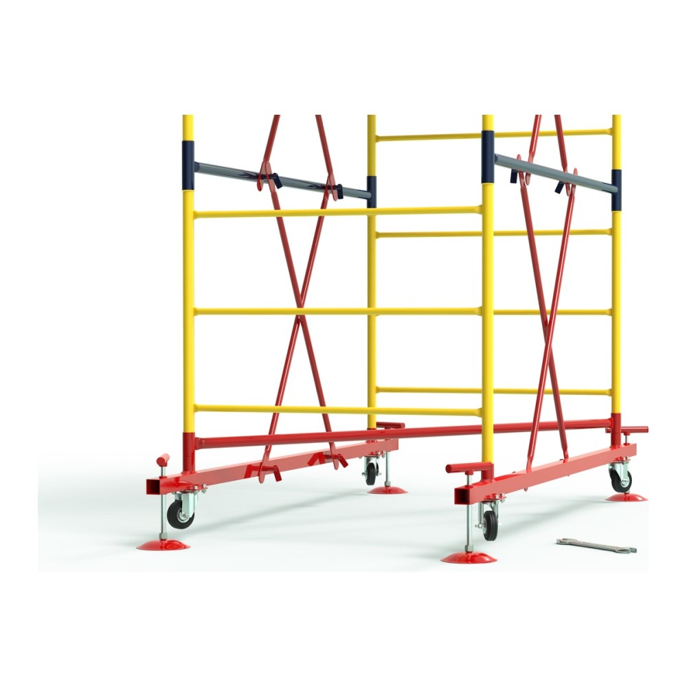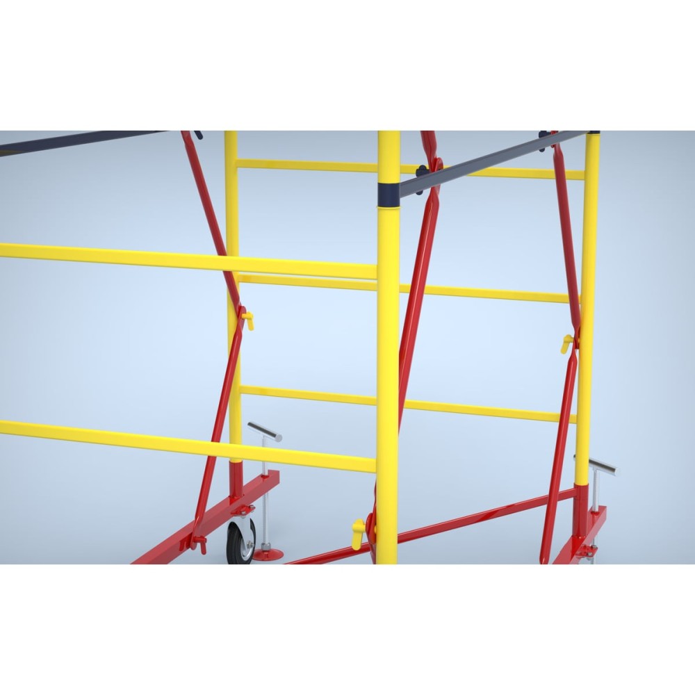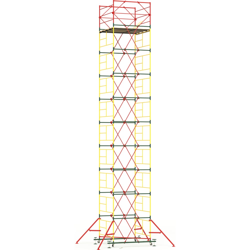 Транспортировочные колеса в комплекте предусмотрены для удобного перемещения вышки по строительной площадке.