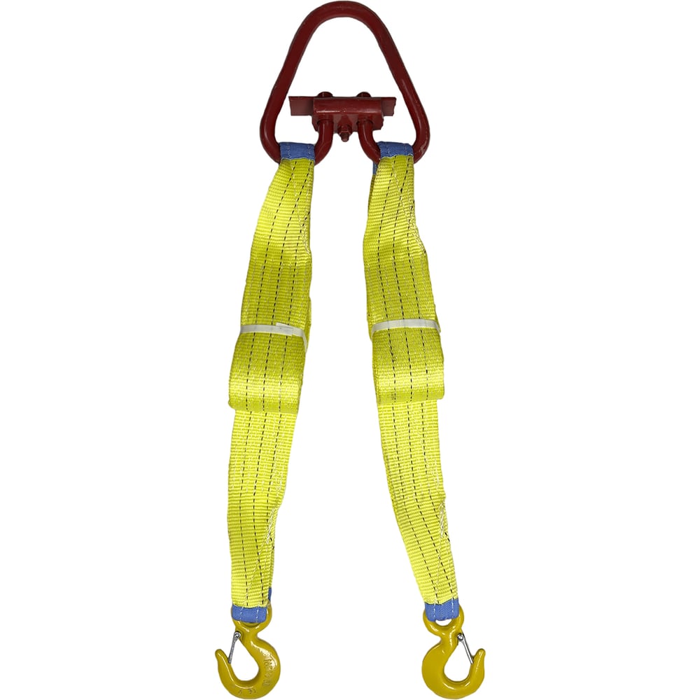 Двухветвевой текстильный строп ТамбовТехСнаб 2СТ 4 т, 10 м 7930130714429 представляет собой профессиональное приспособление для подъема и транспортировки грузов – крупногабаритных, тяжелых, легкоповреждаемых. Строп состоит из двух лент высокой прочности, соединенных треугольным звеном, с крюками на концах. Разные цвета изделий указывают на ширину ветвей и грузоподъемность системы.