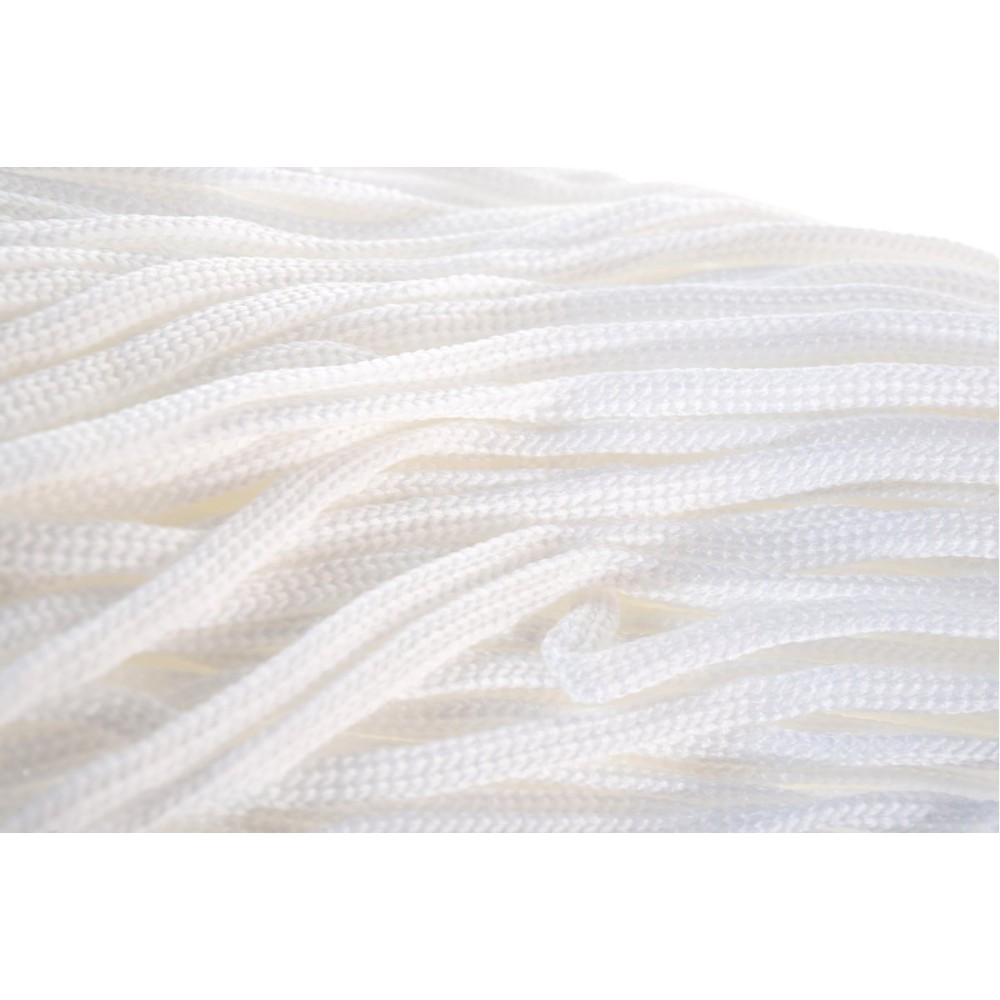 Вязаный шнур ПЭ бытовой 4 мм, белый, 20 м Tech-Krep 139973 за счет особенностей плетения распределяет продольную нагрузку на переплетения волокна.
